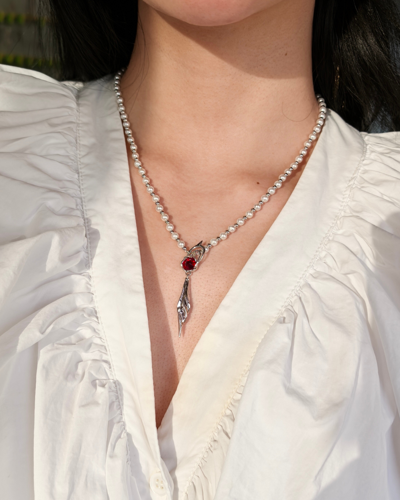 The pendant resembles a flower-shaped compass—guiding him home, back to you, through every long journey. The centerpiece is available in two versions: black spinel and red zircon, each adding its own touch of depth and emotion.