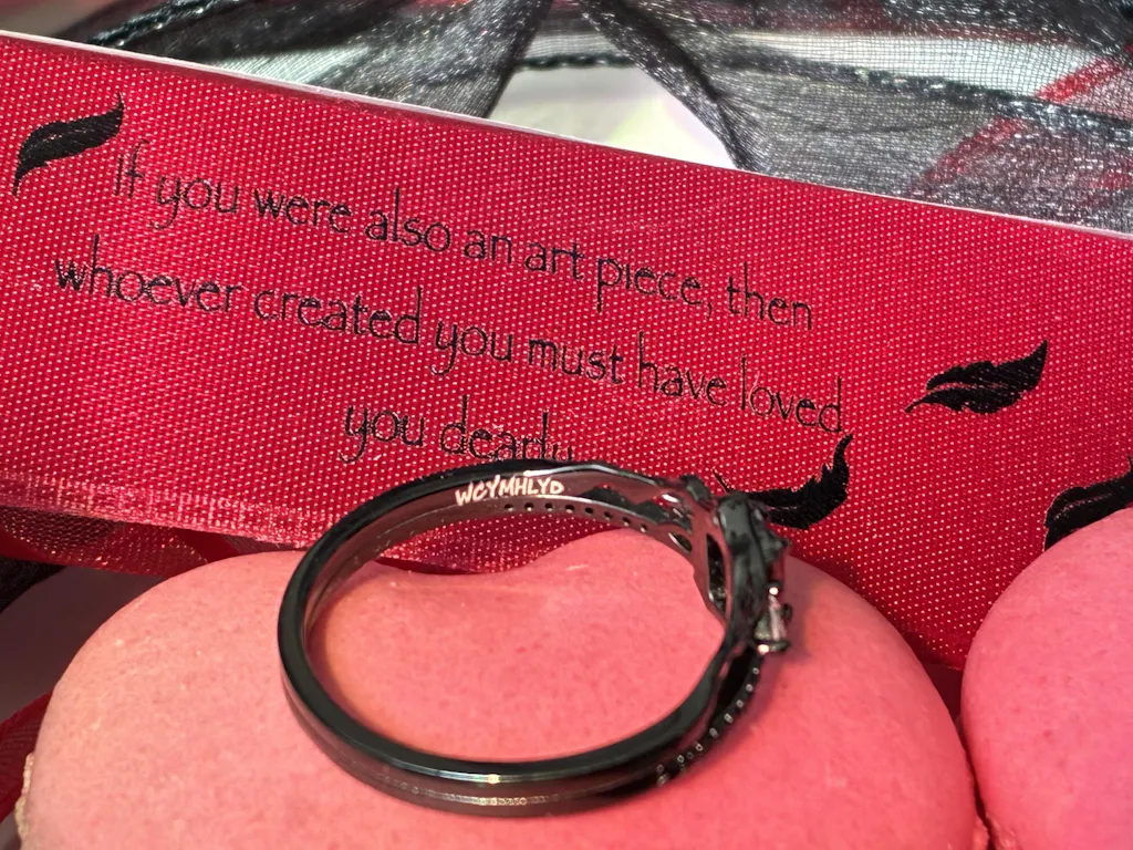 I love this ring! I wasn’t sure if I would like it in-person as much as I might have with the white gold version, but I have to say, I am one happy Crow. 🐦⬛ The shine on the metal is nice, it feels like I’m wearing nothing it’s so comfortable, and because the stone looks more matte, it stands out from the shine on the band. The glitter of the smaller stones is so pretty, I can’t stop staring at it when it catches the light just right. 😩 Of course, I had to have a custom engraving! Not just as a great quote from Sylus, but as a reminder to myself that I am beautiful and badass, much like the way our dragon is our ultimate hype man. 🖤 I also have to shout out the Velnic team for being awesome, especially Merly from customer support! I clicked the wrong size for my other ring (Zayne’s Aquamarine Eternal Lifebind), and they were super helpful and responsive. Not only was my issue fixed, but when a production issue came up, they made sure to keep me informed every step of the way! I will definitely be back, as this will not be my last purchase. (Datura earrings, or Frosted Jasmine set, perhaps? 👀) What are you waiting for? Treat yourself! It’s what our Boss-Man would want for you. 😉