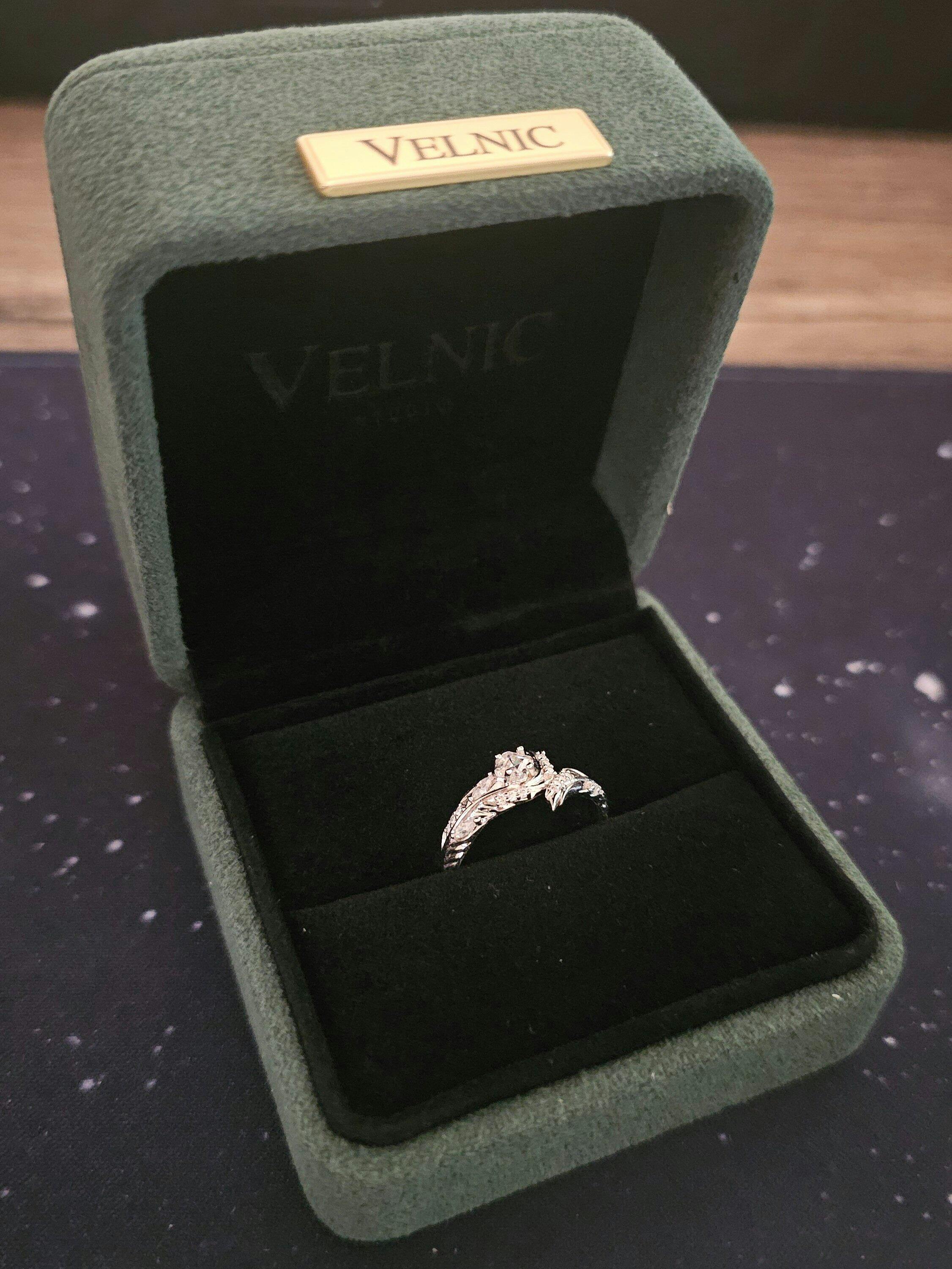 I am genuinely so impressed with this piece. It looks even better than I expected, and is really well crafted - no sharp edges, stones have a really nice shine. I was worried about sizing, but it ended up fitting perfectly. All of the packaging really made it even more special too, with the little merch items and certificate. It got to me so fast with no customs/tariff issues at all. I’m so glad I took a chance and ordered - this is a beautiful ring. I’ve got very sensitive skin and could never buy merch jewelry because of it until now. Keep doing what you’re doing, Velnic!!